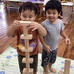 安全な環境の中で子どもたちが満足して生活できる保育を目指す。